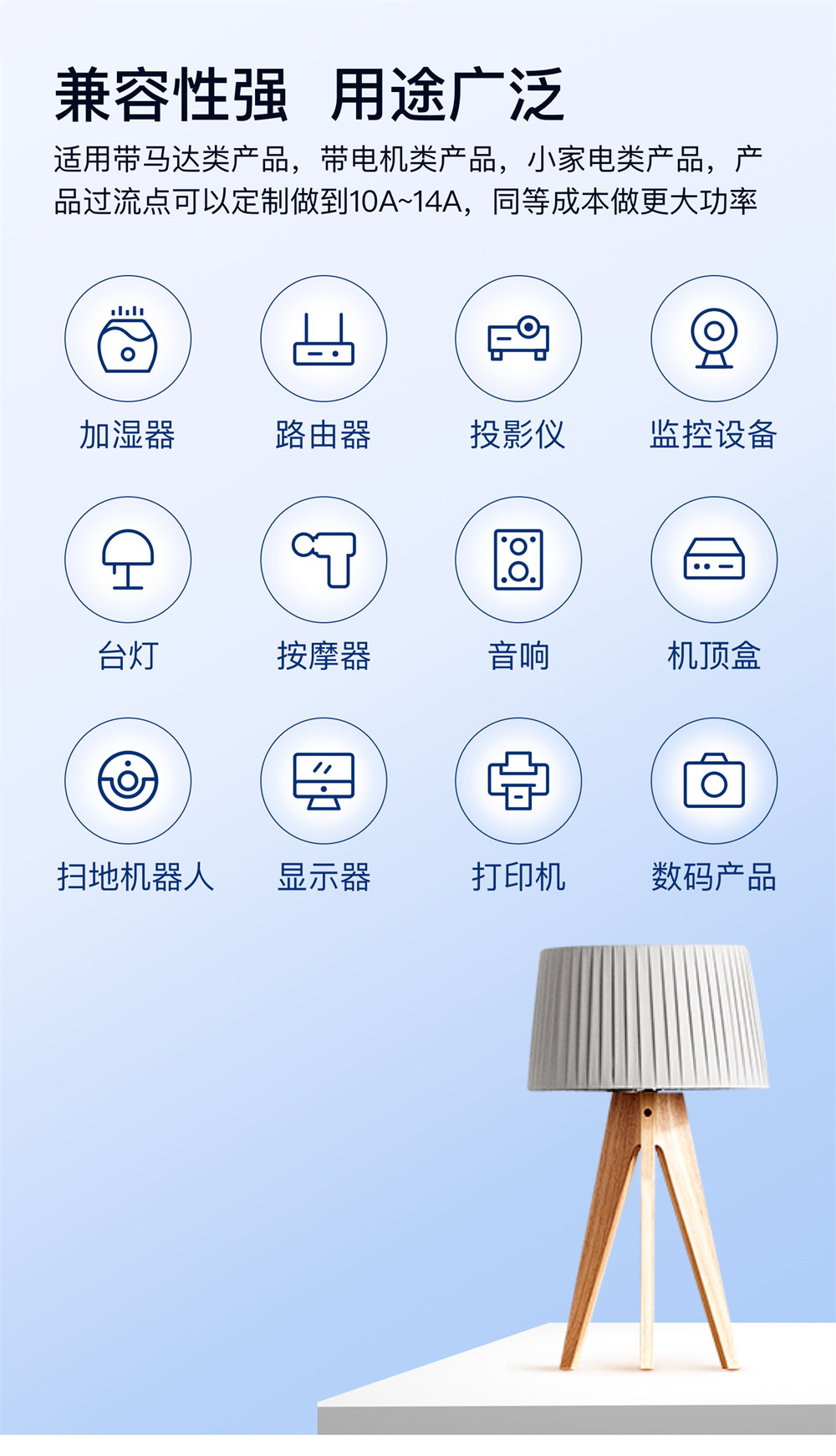 產品廣泛應用于家用電器/美容設備/移動設備/機頂盒/POS 機