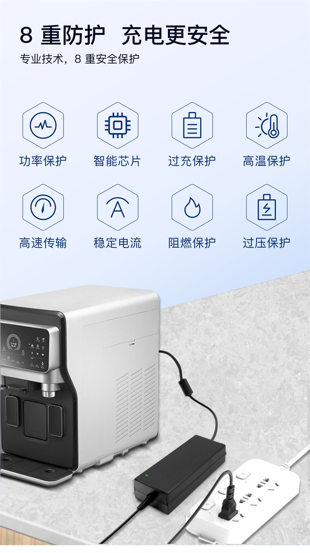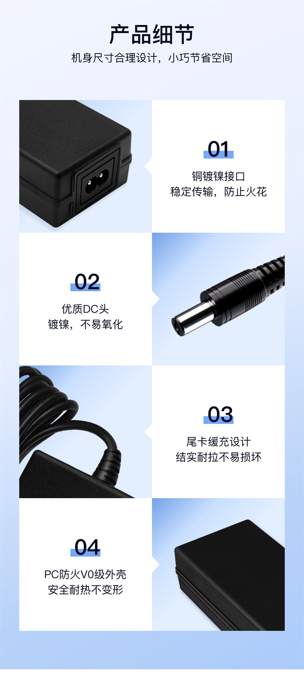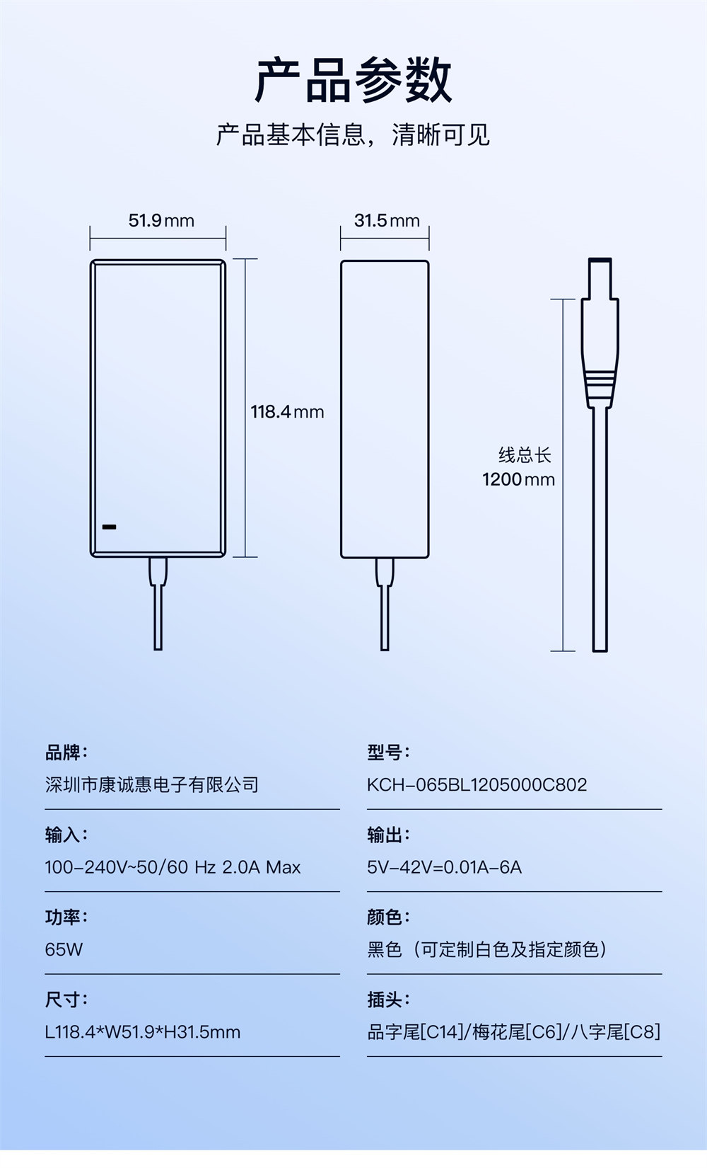 ●產品保護 :65W 系列電源適配器內設過流、過壓、短路、過溫保護電