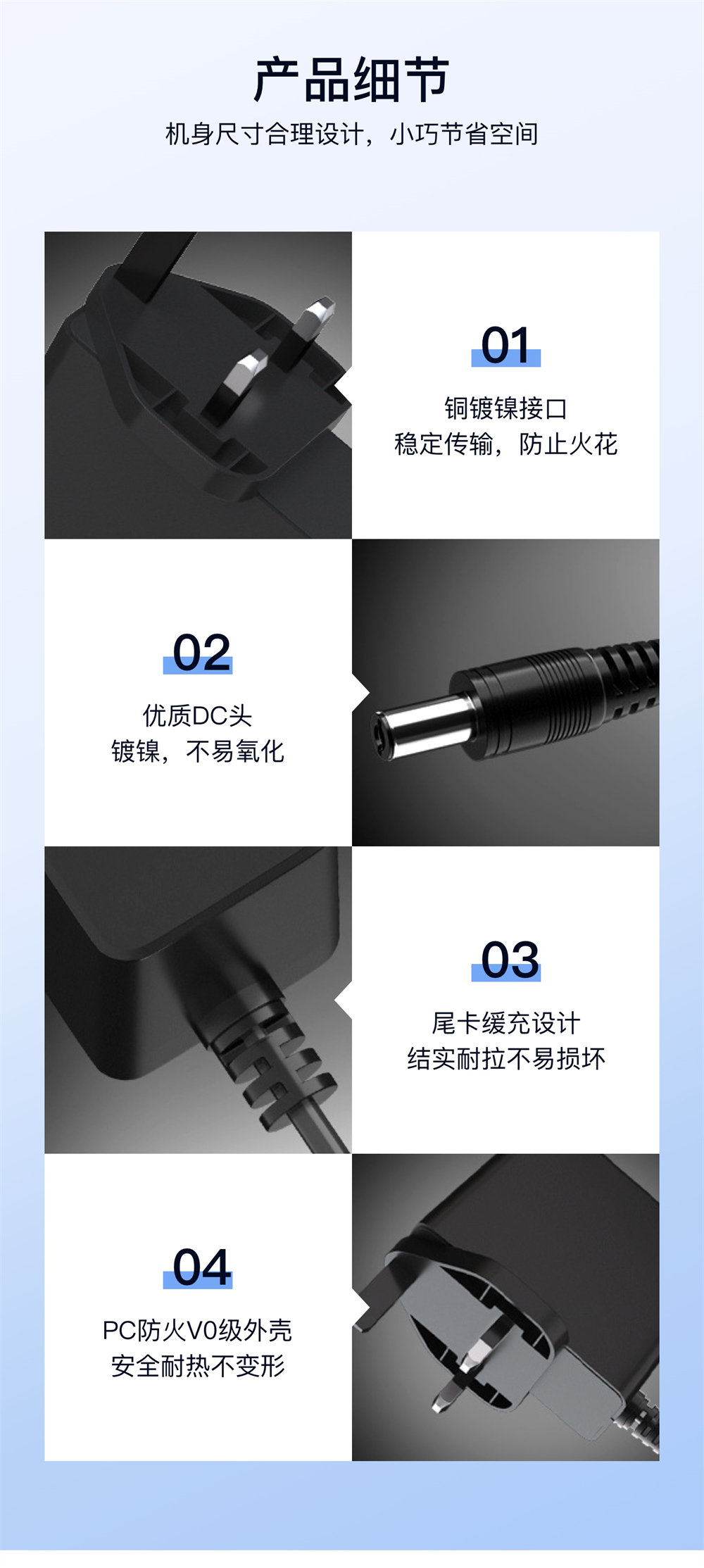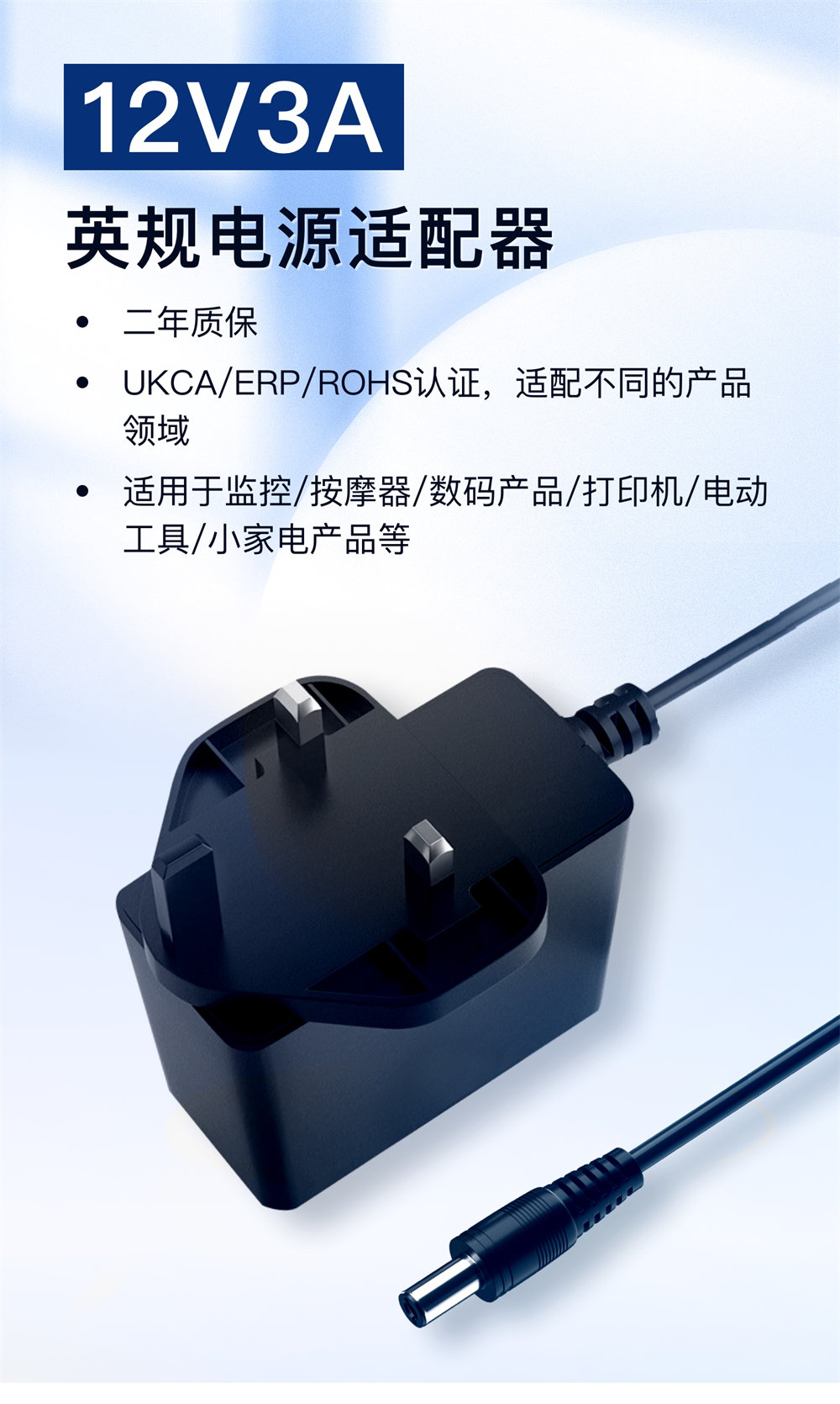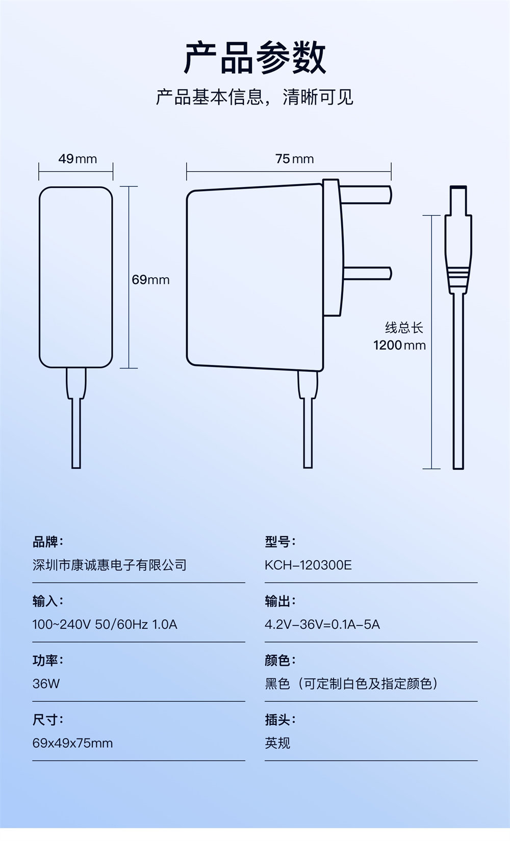 ●產品保護 :36W 系列電源適配器內設過流、過壓、短路、過溫保護電