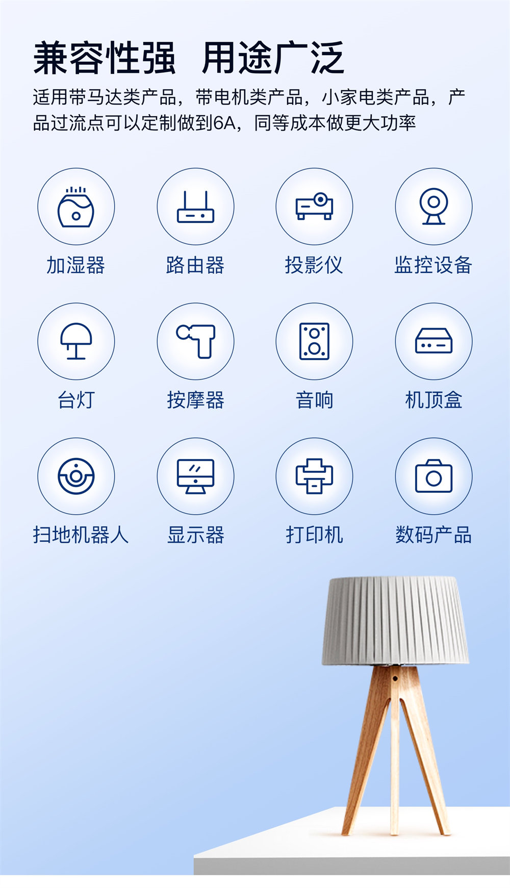 產品廣泛應用于家用電器/美容設備/移動設備/機頂盒/POS 機