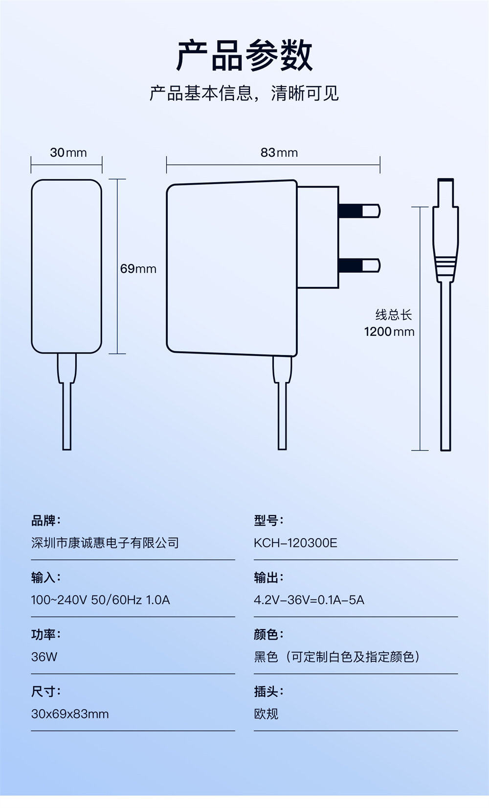 ●產品保護 :36W 系列電源適配器內設過流、過壓、短路、過溫保護電
