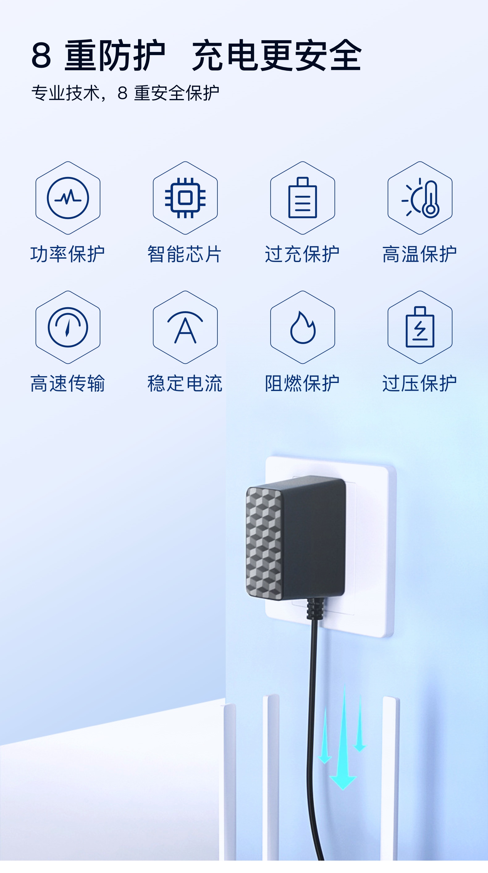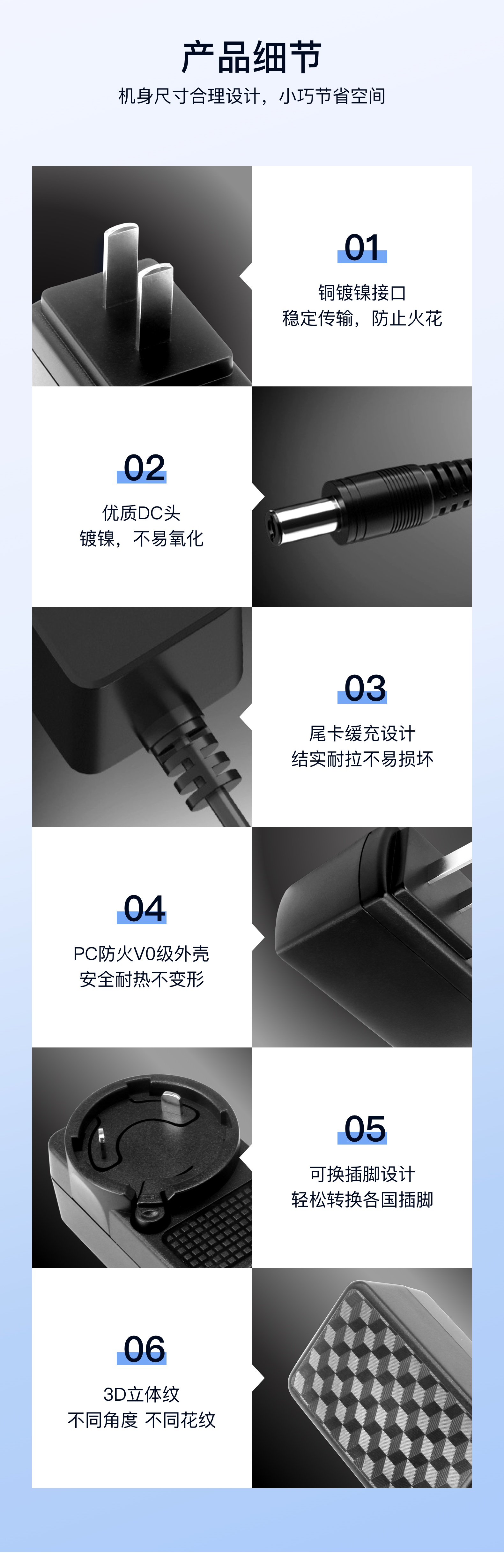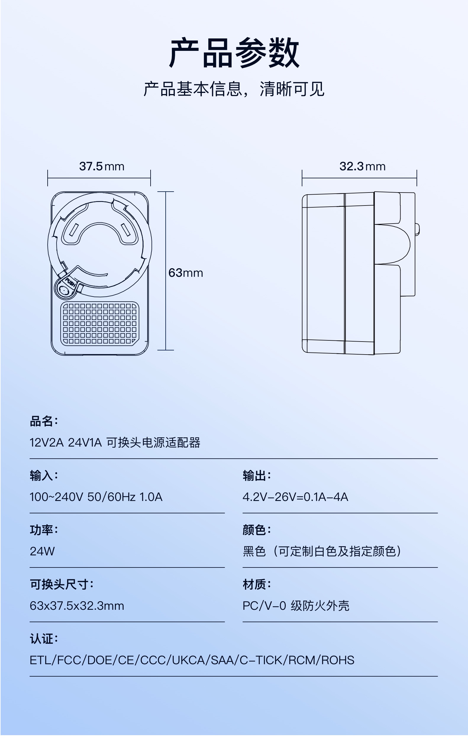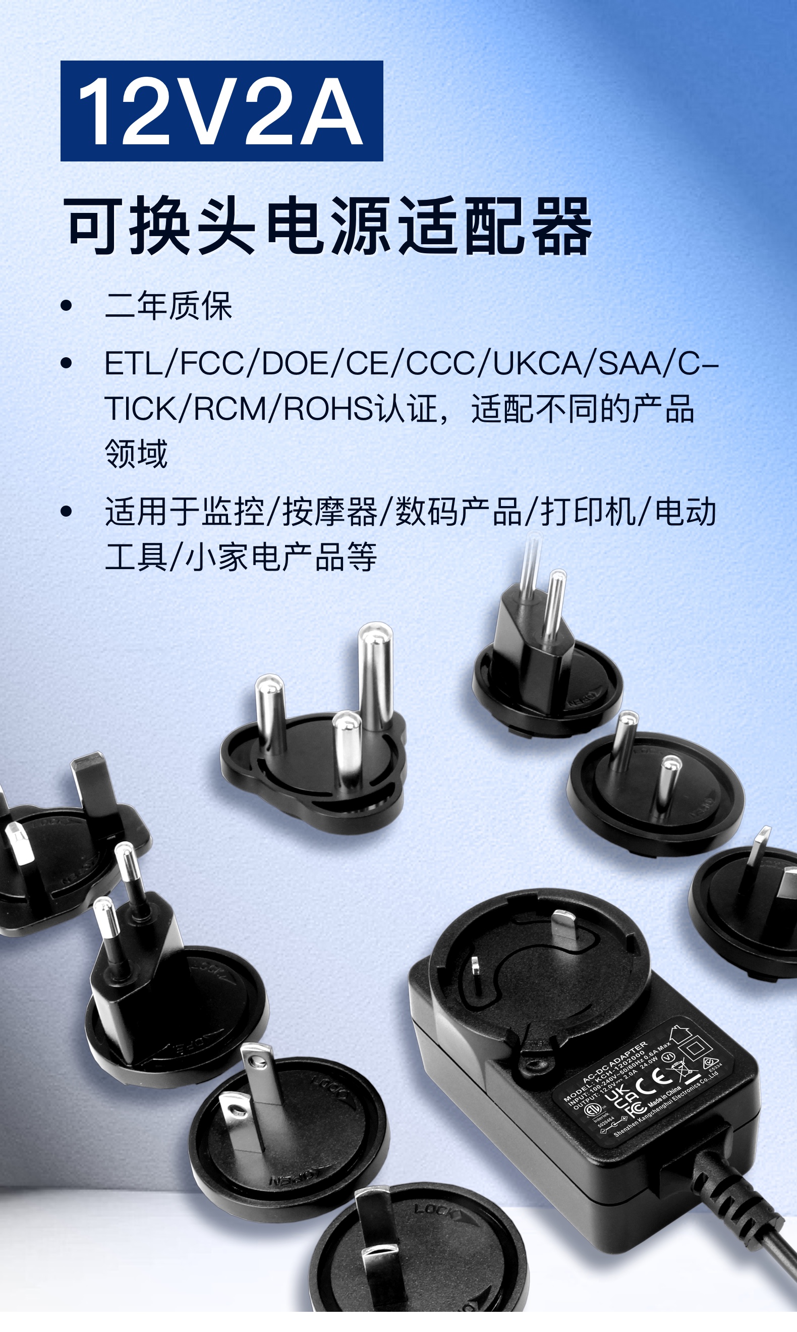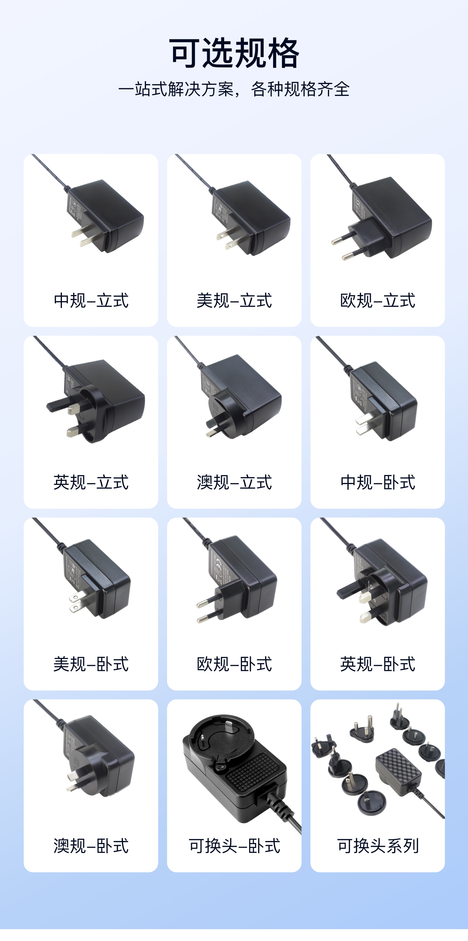 ●產品保護 :24W 系列電源適配器內設過流、過壓、短路、過溫保護電