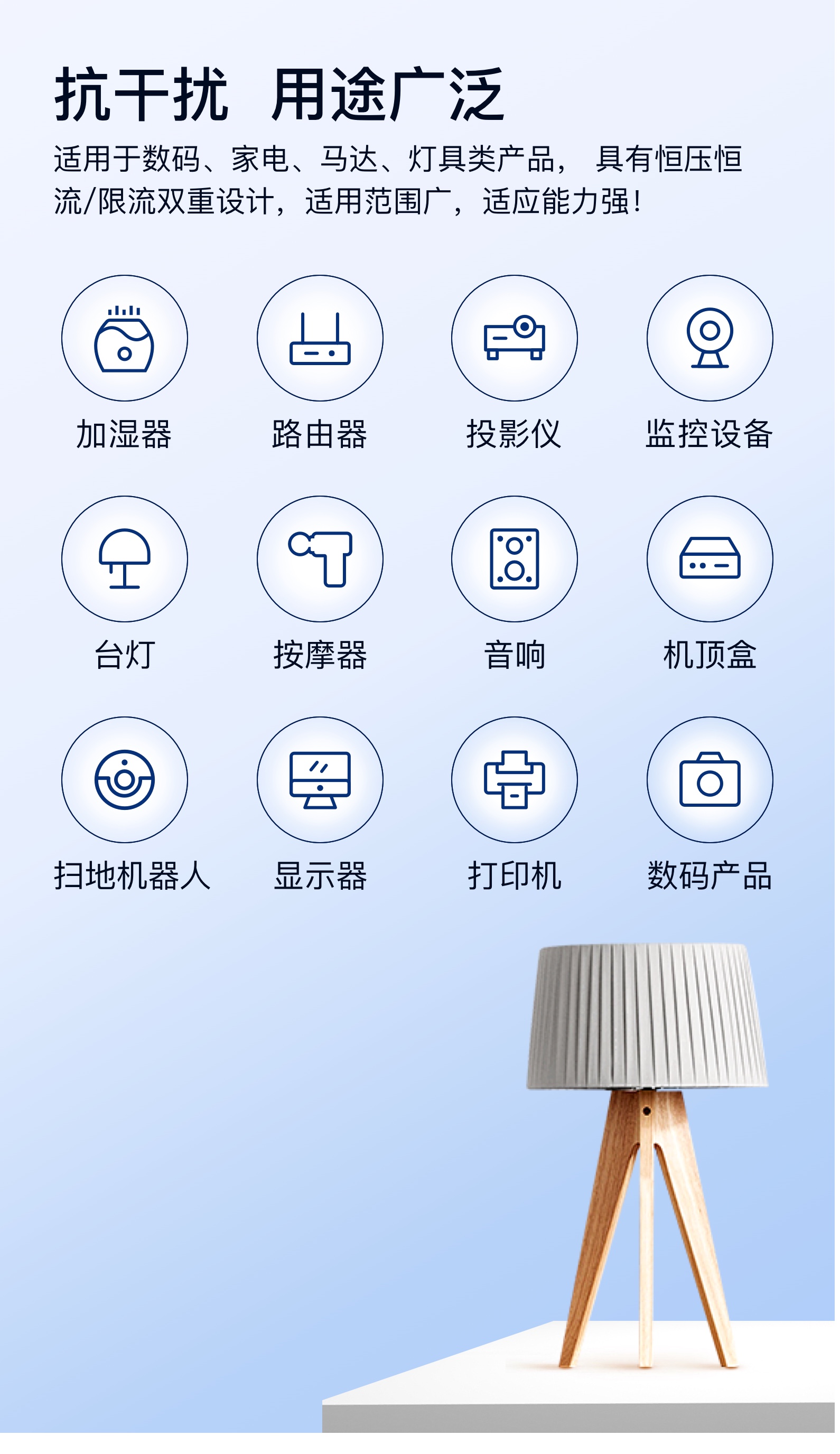產品廣泛應用于家用電器/美容設備/移動設備/機頂盒/POS 機